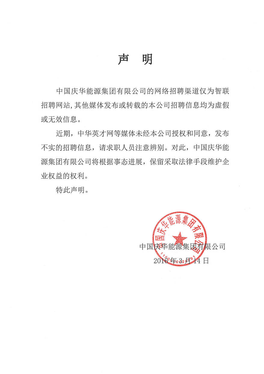 中國慶華能源集團有限公司2016年五一勞動節致辭